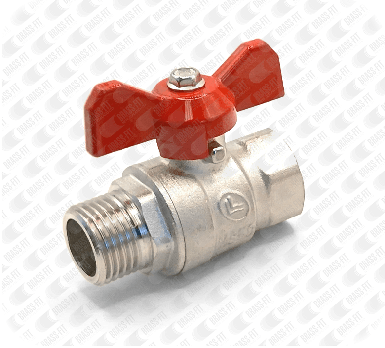 Male/Female BSPP nickel plated Brass ball valve. These ball valves have a P.T.F.E. seat and a Teflon o'ring seal.